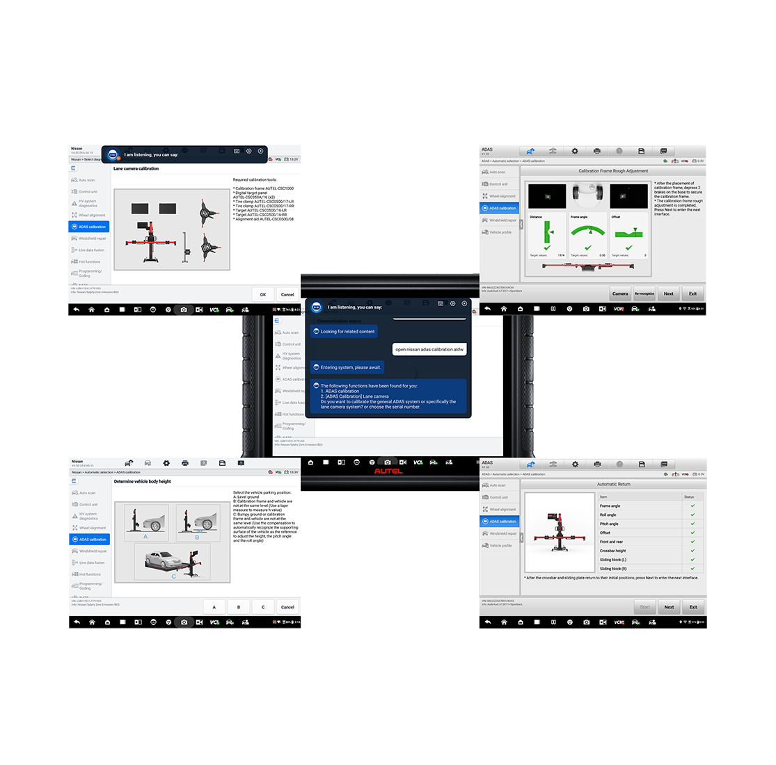 - Komplexní pokrytí vozidel a funkcí: IA1000 umožňuje provádět kalibrace a měření geometrie pro širokou škálu evropských, asijských i amerických vozidel včetně funkcí LDW (systém pro varování před opuštěním jízdního pruhu), ACC (adaptivní tempomat), AVM (360° kamera), BSD (sledování mrtvého úhlu), RCW a mnoho dalších. Plně podporuje originální postupy výrobců (OEM) a splňuje přísné požadavky pojišťoven i auditních kontrol.