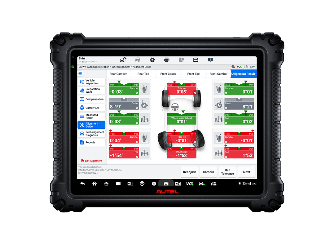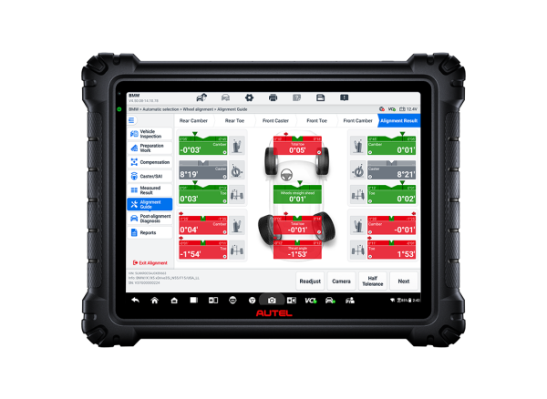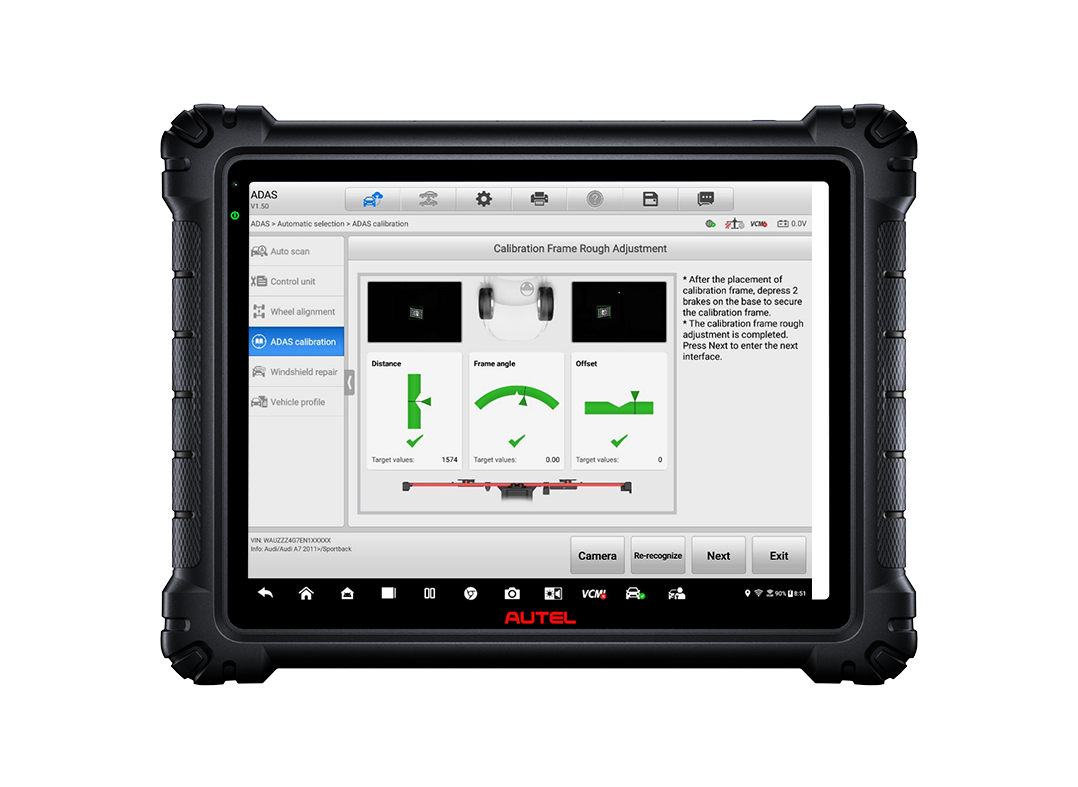 - Pokročilá integrovaná diagnostika: Celý proces je řízen výkonným tabletem MaxiSYS který umožňuje podrobnou diagnostiku a topologii všech řídicích jednotek před i po kalibraci. Tento systém je navržen pro maximální přehled, rychlost a minimalizaci omylů při práci na moderních vozech.