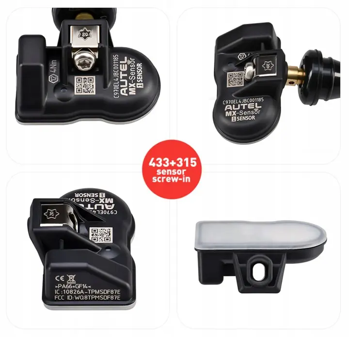 PROGRAMOVATELNÝ UNIVERZÁLNÍ SENZOR TPMS kombinuje obě frekvence 315 MHz + 433 MHz do jediného senzoru TPMS. Snímače MX jsou zkonstruovány tak, aby se vyrovnaly nebo předčily snímače OEM, pokud jde o sílu frekvence a životnost, jsou 100% schopné klonování ID bez nutnosti opětovného učení a nabízejí pokrytí nejnovějšího modelu vozidla, protože se rychle aktualizují pomocí bezdrátového programovacího nástroje Autel.