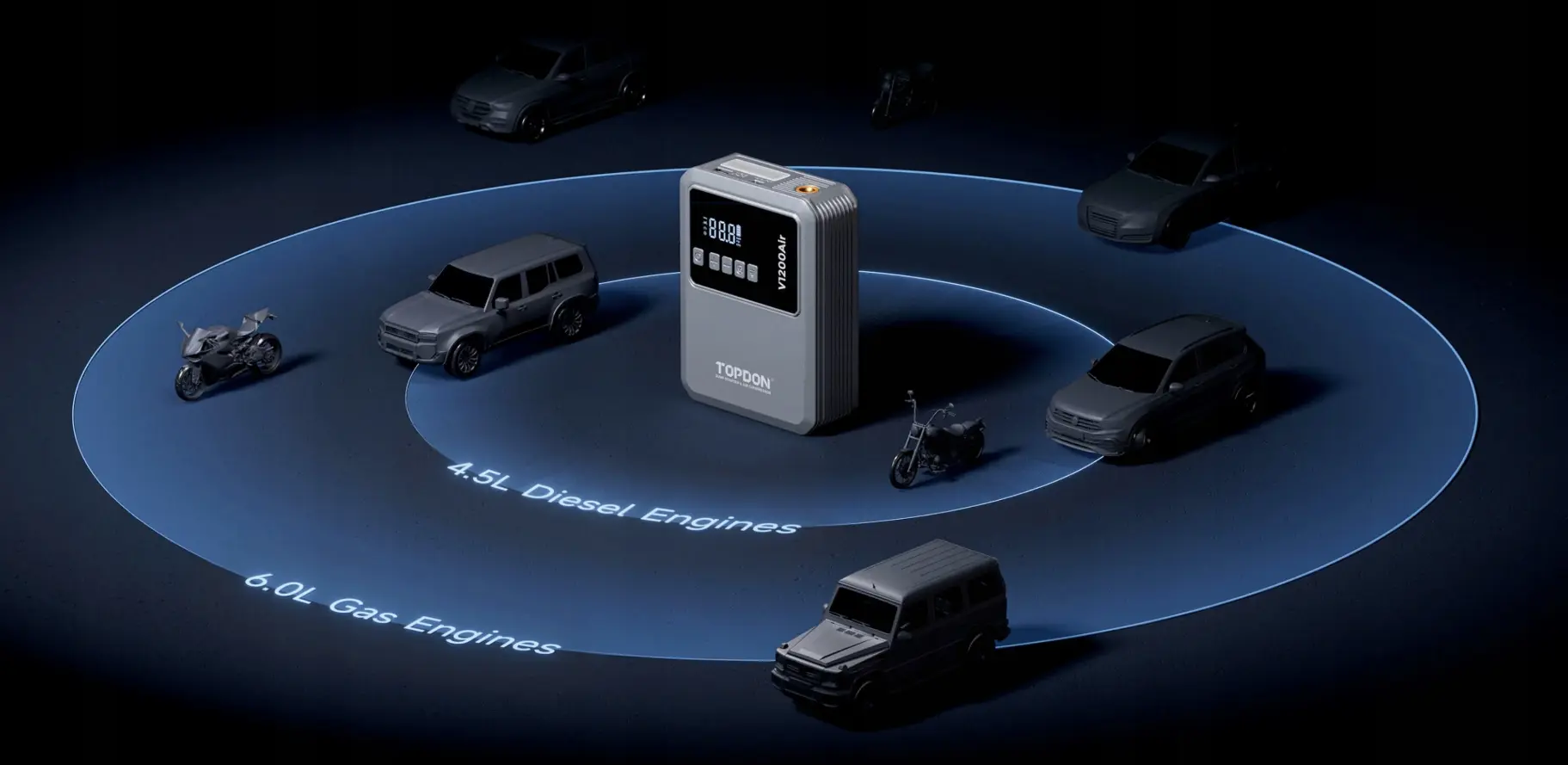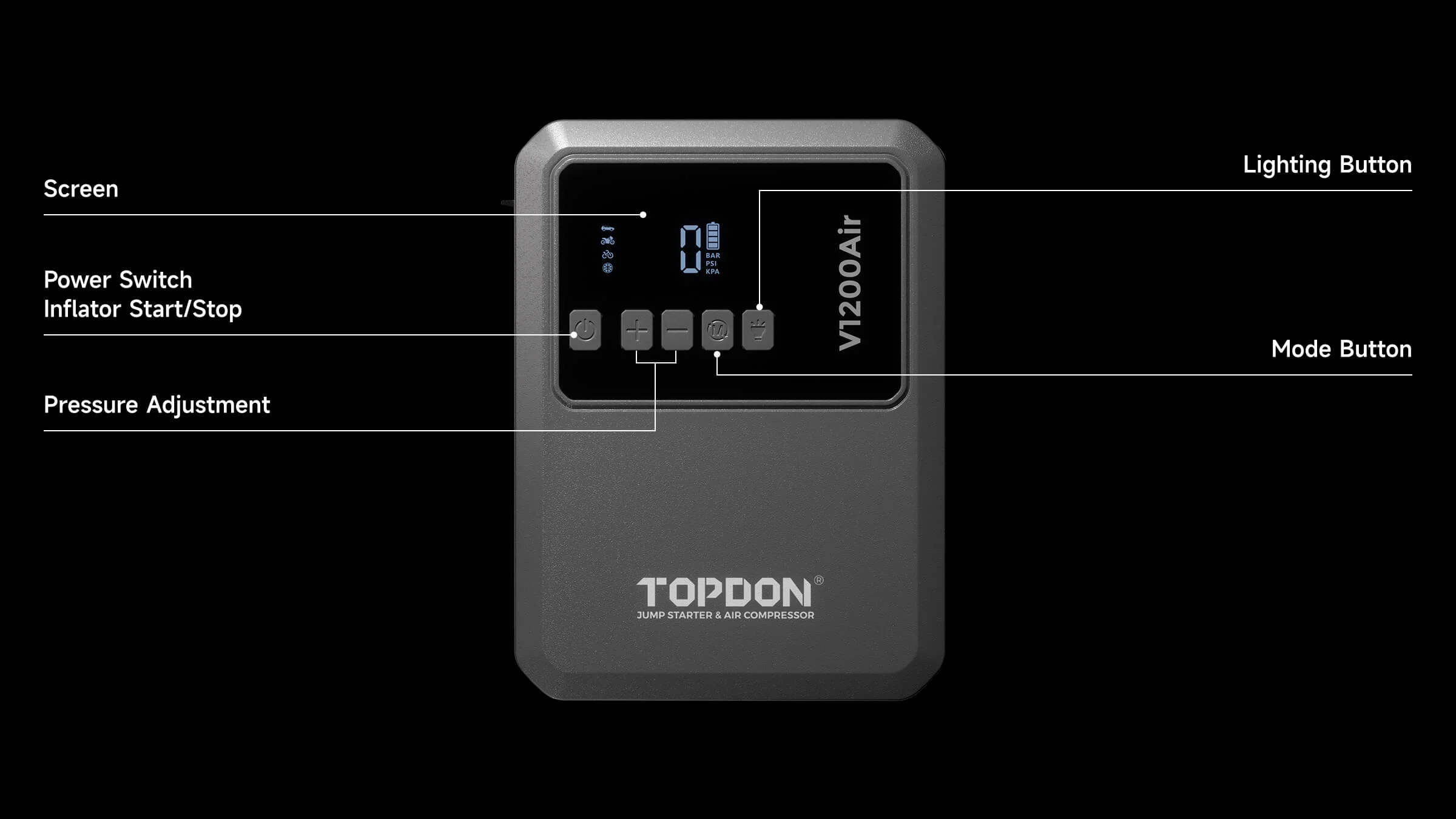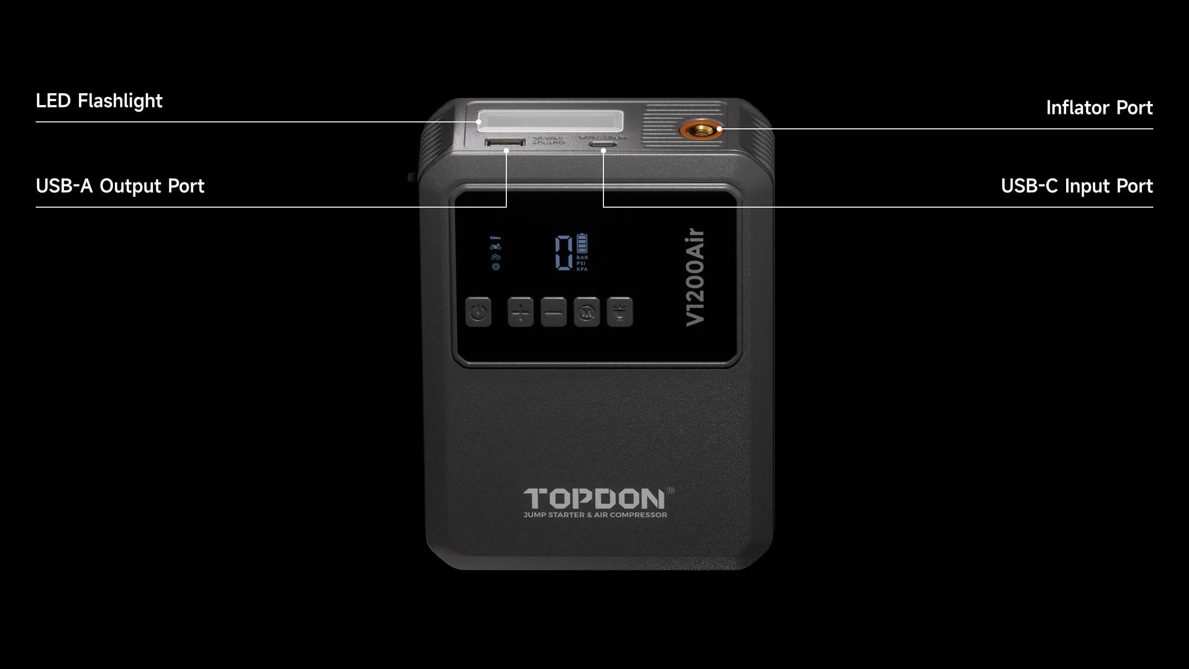 TOPDON V1200Air – 4v1 startovací zdroj + kompresor + powerbanka + LED světlo