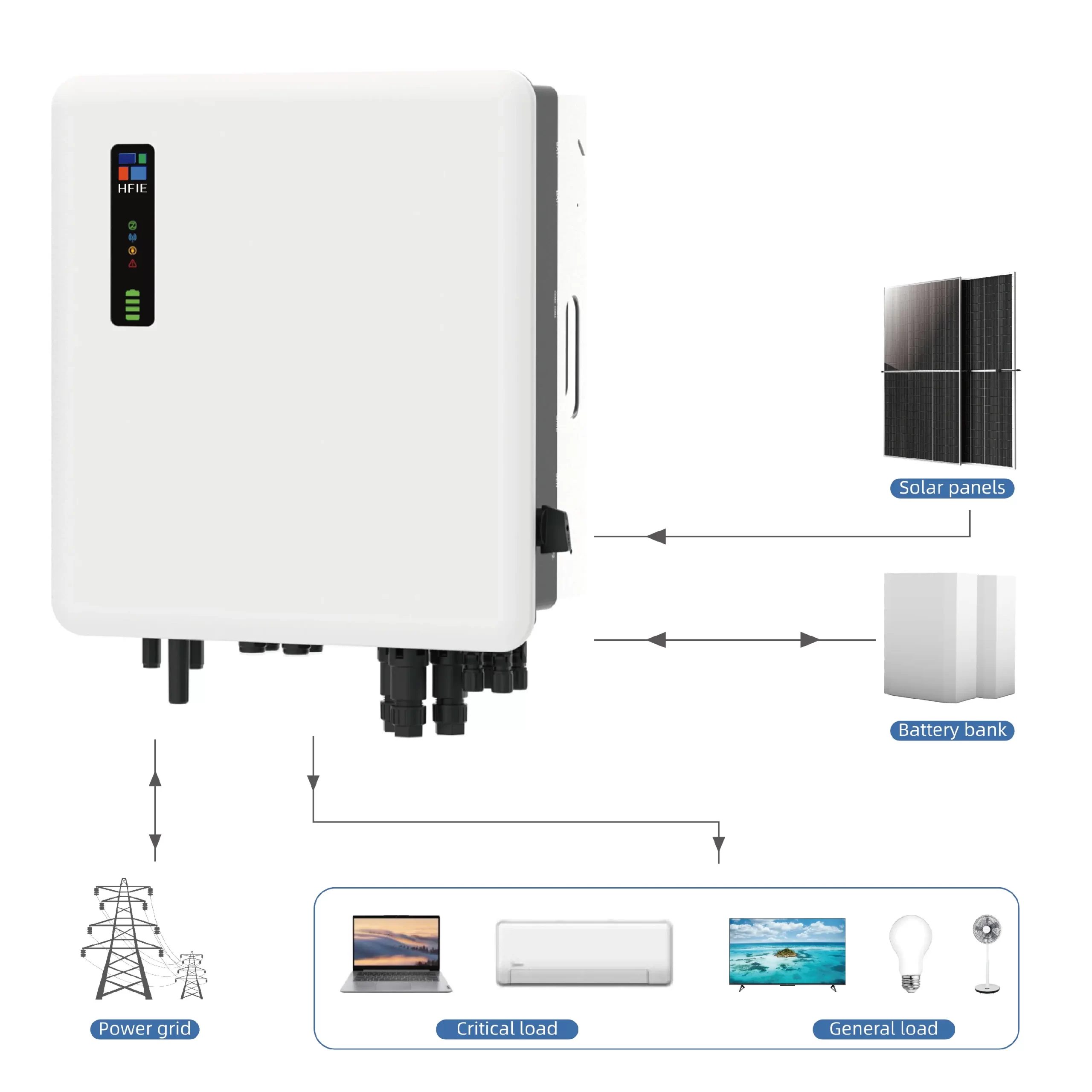 - HF-HL6K-P1EU představuje špičkové řešení pro moderní fotovoltaické instalace v domácnostech a menších komerčních objektech. Tento jednofázový hybridní měnič s výkonem 6 kW kombinuje připojení k distribuční síti, solárním panelům a bateriovému úložišti do jednoho inteligentního systému, který zajišťuje maximální efektivitu využití energie a vysokou úroveň energetické soběstačnosti.